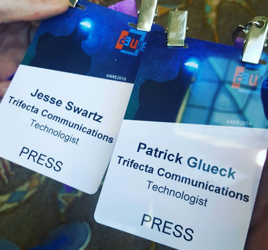Patrick Glueck, a Technologist for Trifecta Communications, attended Augmented World Expo in San Jose, California last summer and tested a number of prototype AR headsets. “Products like Microsoft’s Hololens definitely show where things are going,” said Patrick. “But unlike VR, there still seem to be a few years between where the technology is now and a truly viable AR headset for consumers.”